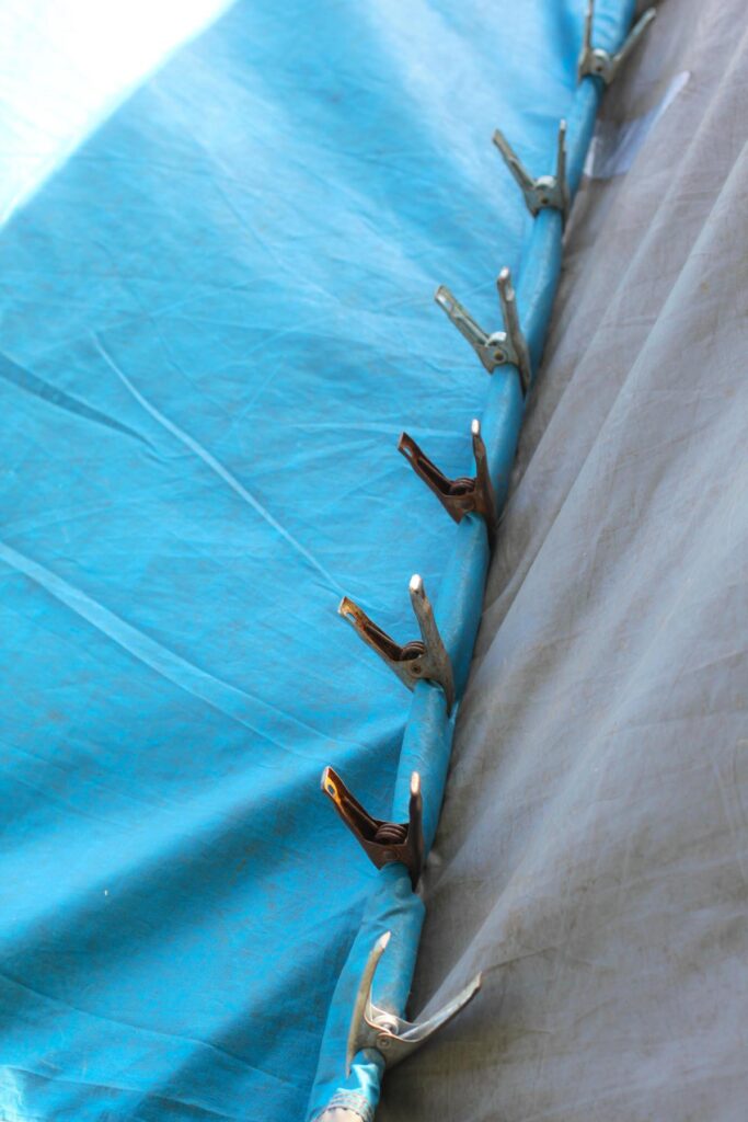 We close the tent material using high tension clamps.